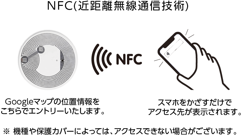 誘導したいホテル・施設名をご記入ください。正式名称・所在地も合わせて記載いただけると確実です。(類似ホテルがある場合は特に) - NFCに登録するリンク先をご確認ください。